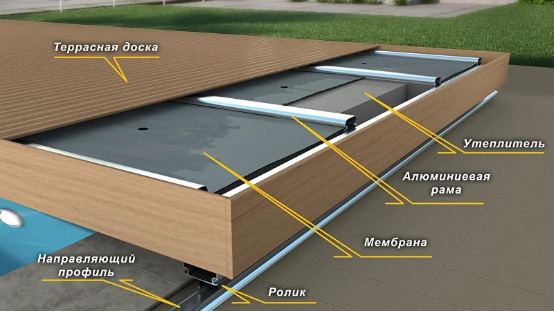 Конструкция автоматической террасы для бассейна