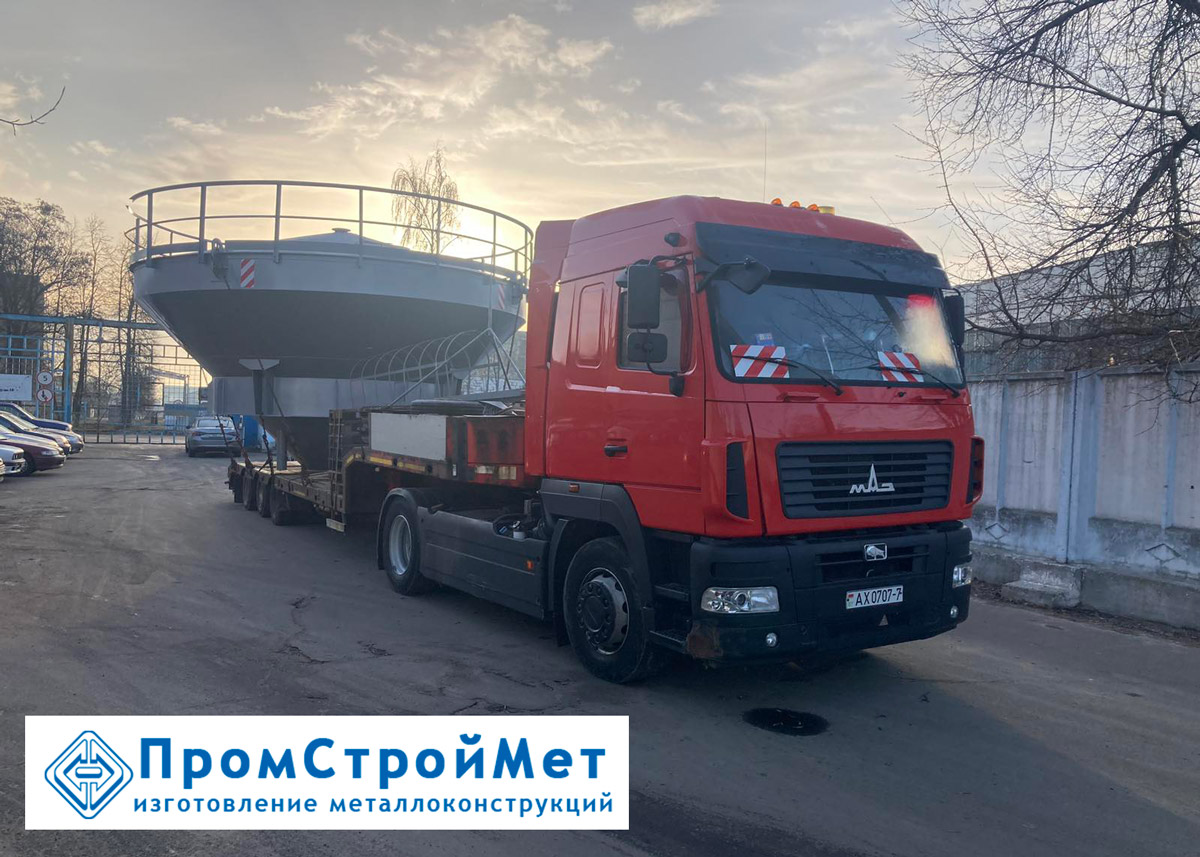 Бесшатровая водонапорная башня с баком емкостью 50 м3 и стволом из стальных конструкций высотой 20 метров (согласно ТП 901-5-3.04) была изготовлена по заказу открытого акционерного общества "МПМК-198" для поставки и монтажа на объекте "Реконструкция животноводческого комплекса под МТФ "Добрунь" в ОАО "Бегомльское" Докшицкого района". Осуществлена доставка водонапорной башни на объект, ведутся работы по ее монтажу.
