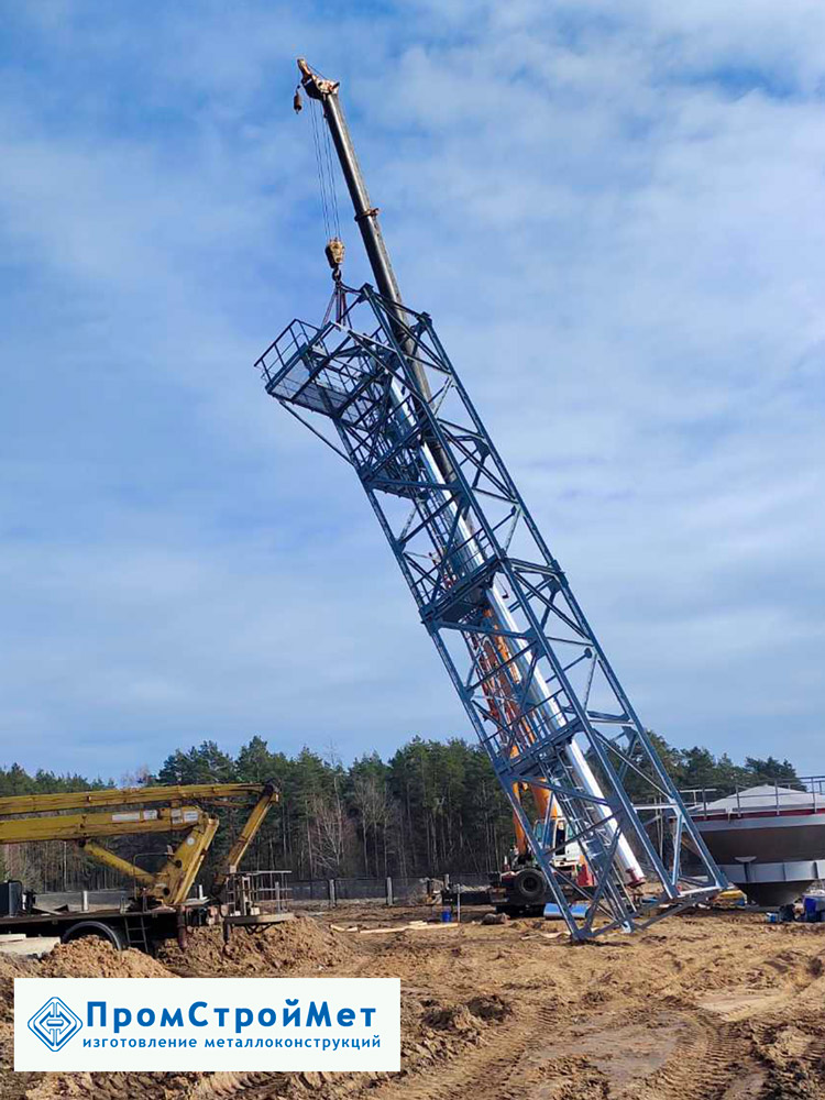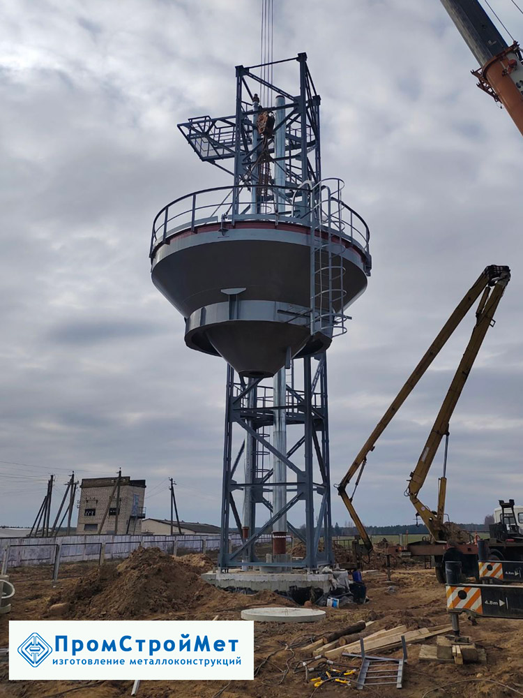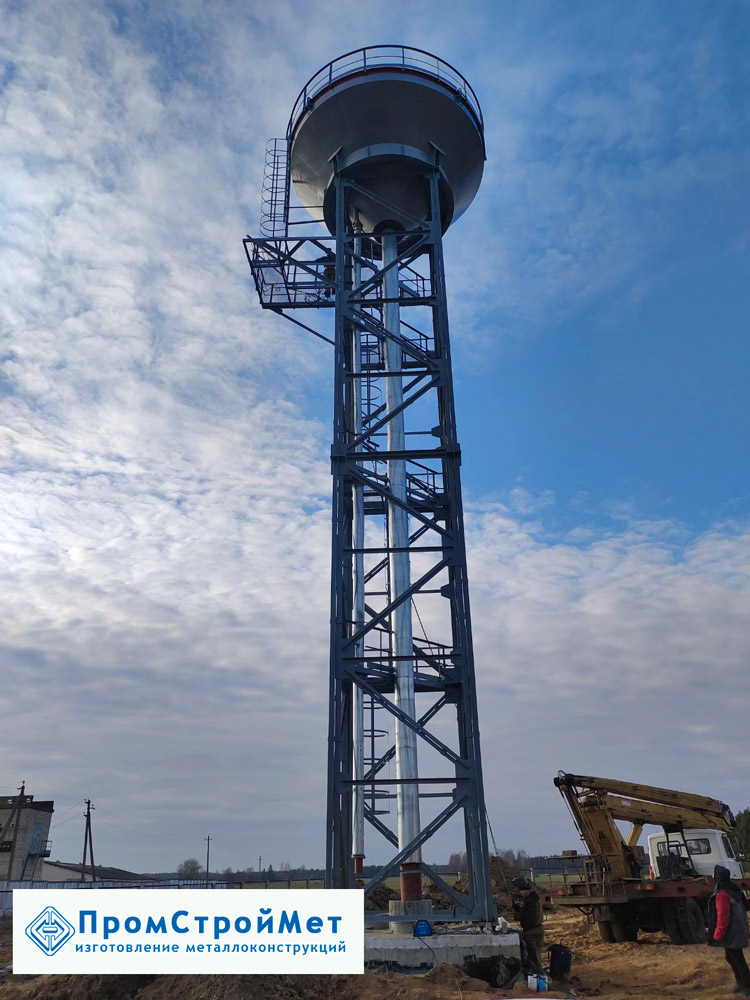 ООО "ПромСтройМет" изготовлена бесшатровая водонапорная башня с баком емкостью 50 м3 и стволом из стальных конструкций высотой 20 метров