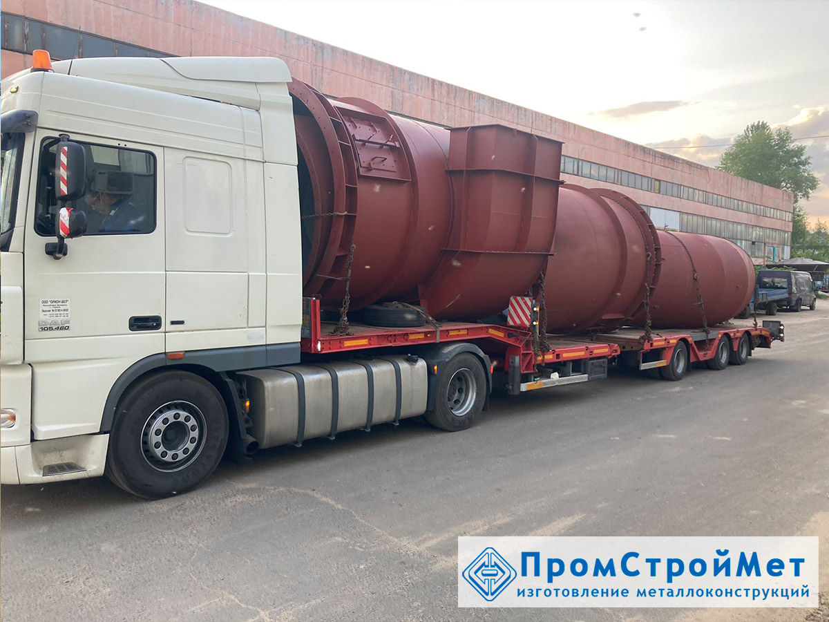 ООО "ПромСтройМет" изготовлен комплект элементов газохода (части отвода входящих и выходящих газов теплоносителя, части циклонов сушки стружки)