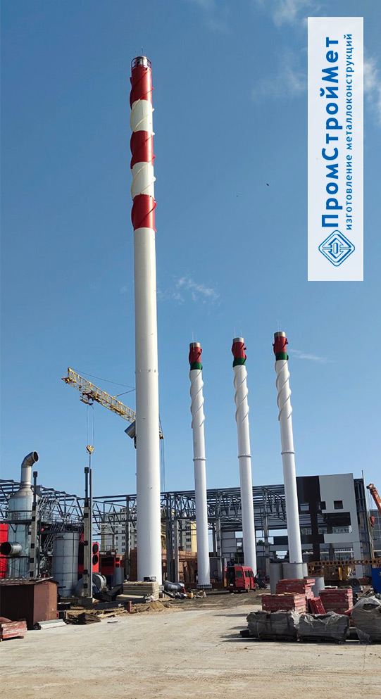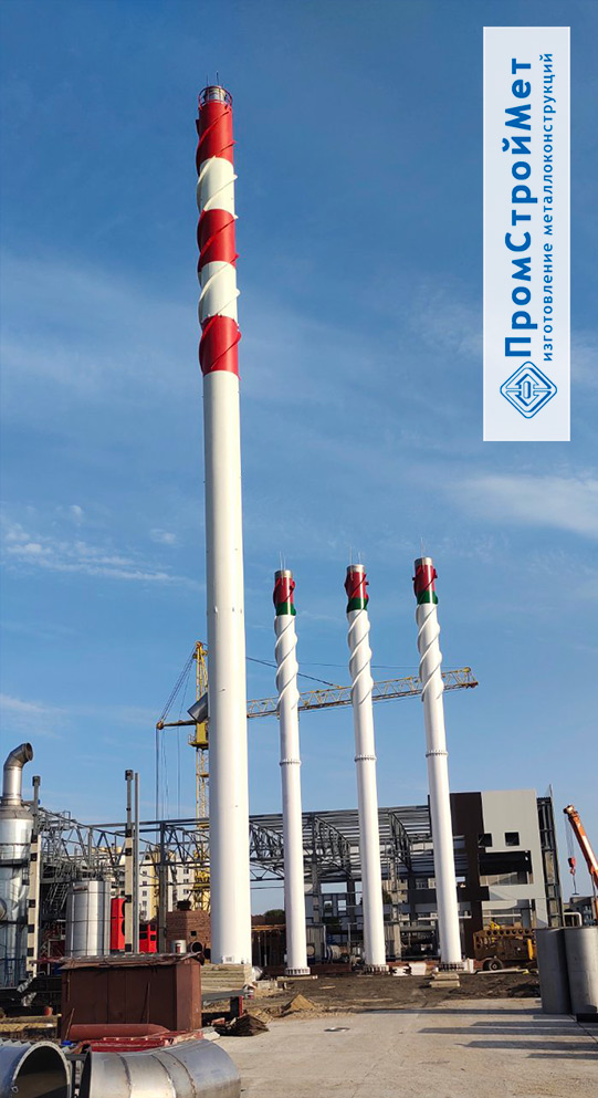 ООО "ПромСтройМет" изготовлена, доставлена и смонтирована металлическая дымовая труба высотой 60 метров