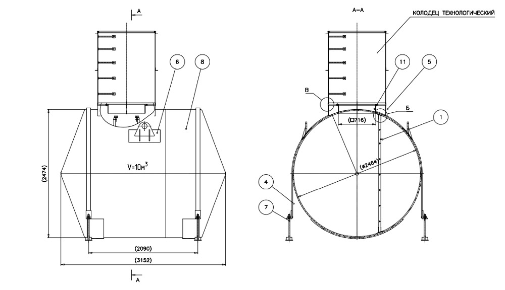 Длина резервуара: 3152 мм.