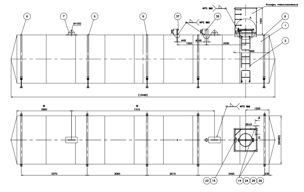 Длина резервуара: 13490 мм.