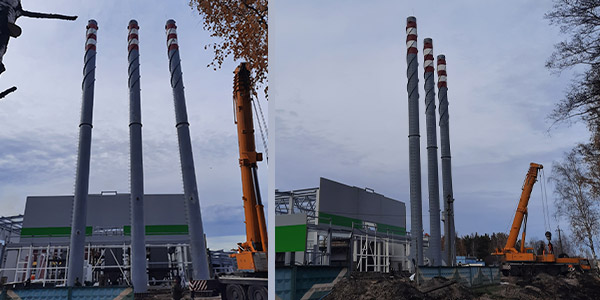 Изготовление трех дымовых труб диаметром 1400 мм высотой 35 метров