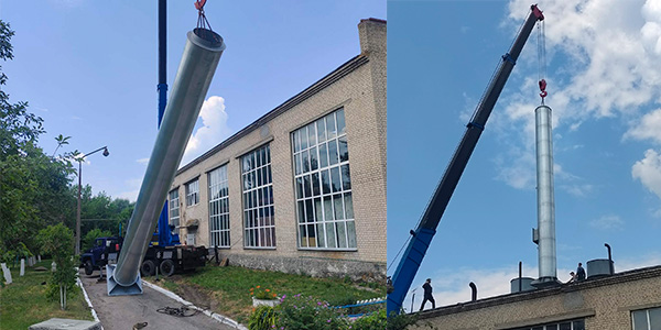Изготовление и монтаж дымовой трубы диаметром 1120 мм высотой 13 метров