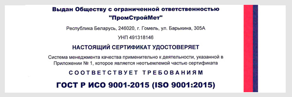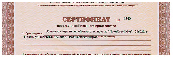Получен Сертификат продукции собственного производства на металлоконструкции из черных металлов и их части!