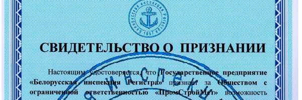 Получено Свидетельство о признании РУП "Белорусская инспекция Регистра"!