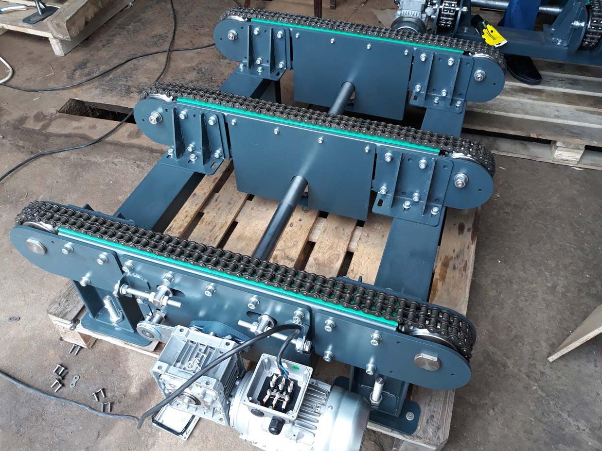 В цепных конвейерах используются различные виды цепей, в зависимости от нагрузки и характера груза – одно- и двухрядные цепи, цепи, оснащенные резиновыми накладками, различными приспособлениями и накопительные цепи. Также данный тип конвейеров имеет жесткую надежную стальную основу (раму), которая позволяет выдерживать большие нагрузки.
