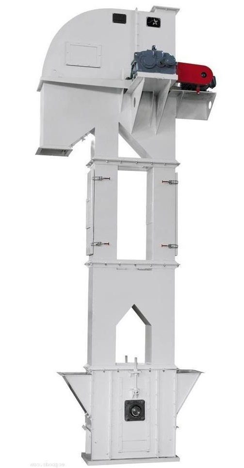 Вертикальные элеваторы (нории) предназначены для вертикального перемещения зерна и продуктов его переработки и широко применяются в составе комбикормовых цехов и комбикормовых заводов. Нория состоит из бесконечного тягового элемента с прикрепленными к нему ковшами, являющимися рабочим элементом. Тяговый элемент огибает приводной и натяжной барабаны. Тяговый элемент, приводной и натяжной барабаны, заключены в металлическом кожухе, верхняя часть которого носит название головки, нижняя башмак. Головка и башмак соединены норийными трубами.