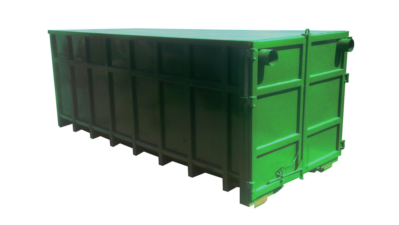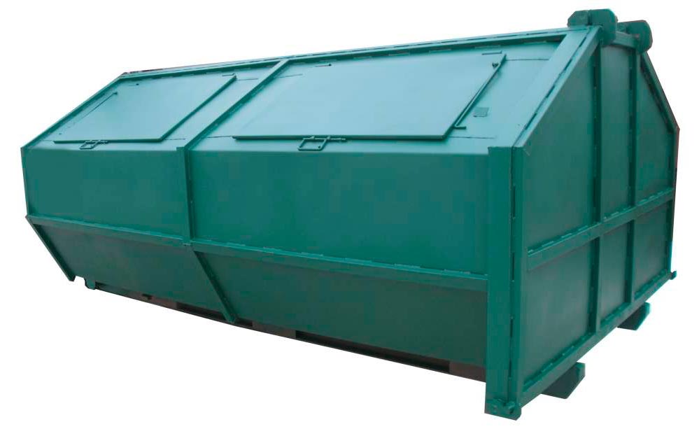 Крупные металлические бункера используются как для крупногабаритных отходов, так и для отходов имеющих большой объем, но небольшой вес (полиэтилен, пэт бутылка, минеральная вата, листва, снег, бумага), которые должны утилизироваться или перерабатываться особым образом. У него внушительные объемы – от 8 до 40 м.куб., а также предельно высокая грузоподъемность, достигающая 12 тонн. Чем выше плотность отходов, тем меньшего объема требуется контейнер.