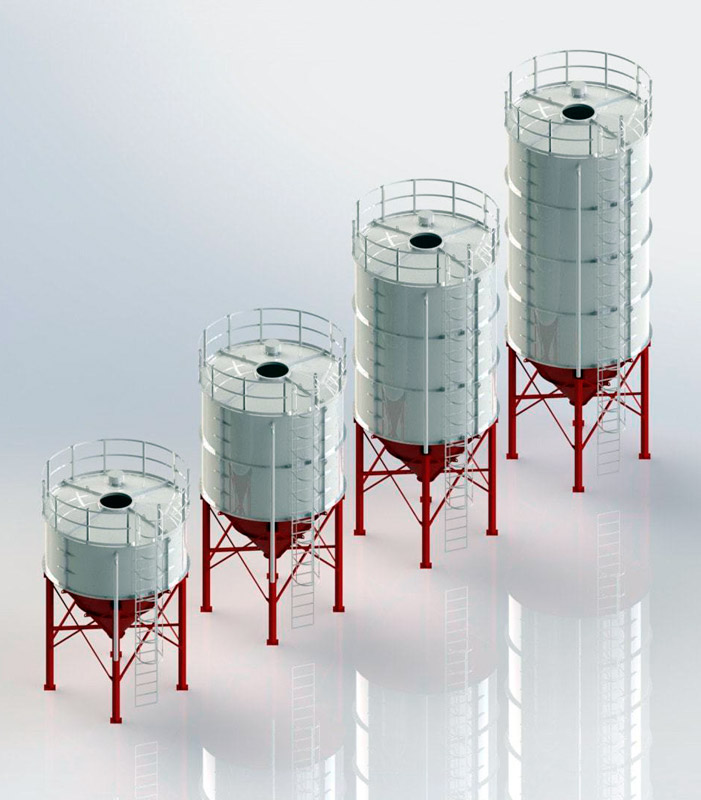 Бункера, имеющие круглое сечение, больших диаметров и силосы изготавливаются из нескольких частей.