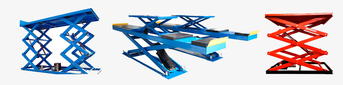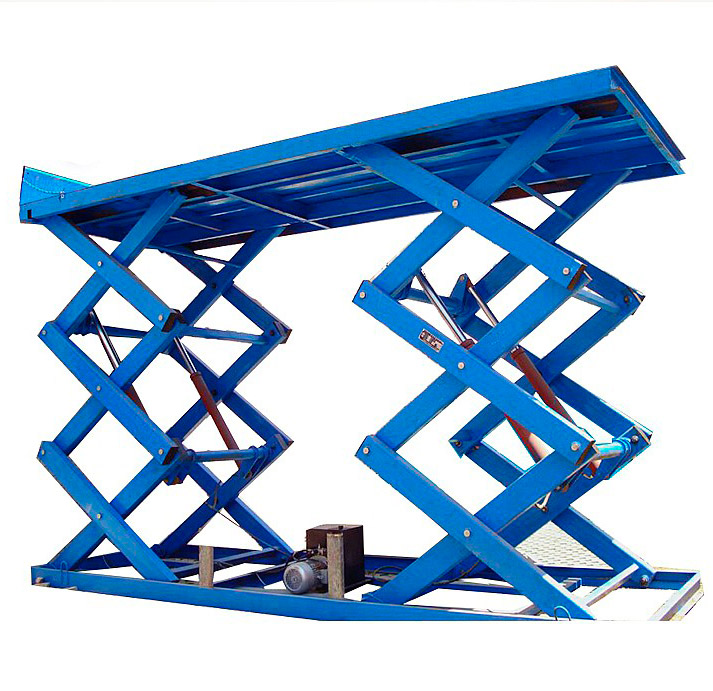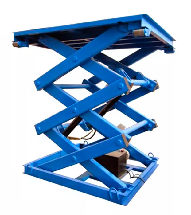 Ножничные гидравлические подъемники (подъемные столы) представляют собой платформу с огражденной площадкой, которая двигается в вертикальной плоскости посредством гидроцилиндра и рычажного ножничного механизма. Подъемник данного типа может устанавливаться в любом месте, имеющем твердое основание и соответствующие габариты. Для них не требуется дополнительного возведения бетонных либо металлокаркасных шахт, а также направляющих. Этот тип подъёмников может устанавливаться в уже готовую шахту как альтернатива грузовым лифтам и подъемникам.