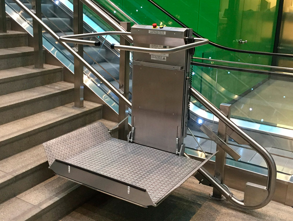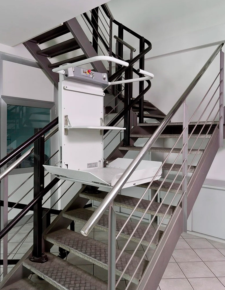 Сама платформа не препятствует движению людей по лестницам, так как легко складывается и в сложенном состоянии занимает минимум места.