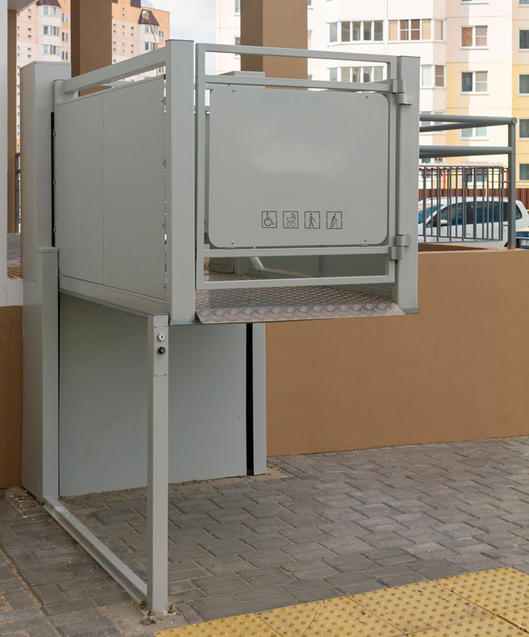 Вертикальный подъемник открытого типа широко применяется в местах, где невозможно установить пандусы под правильным углом. Их устанавливают в местах старой застройки и проектируют для новых зданий.