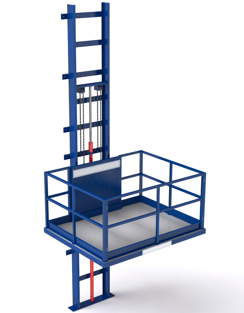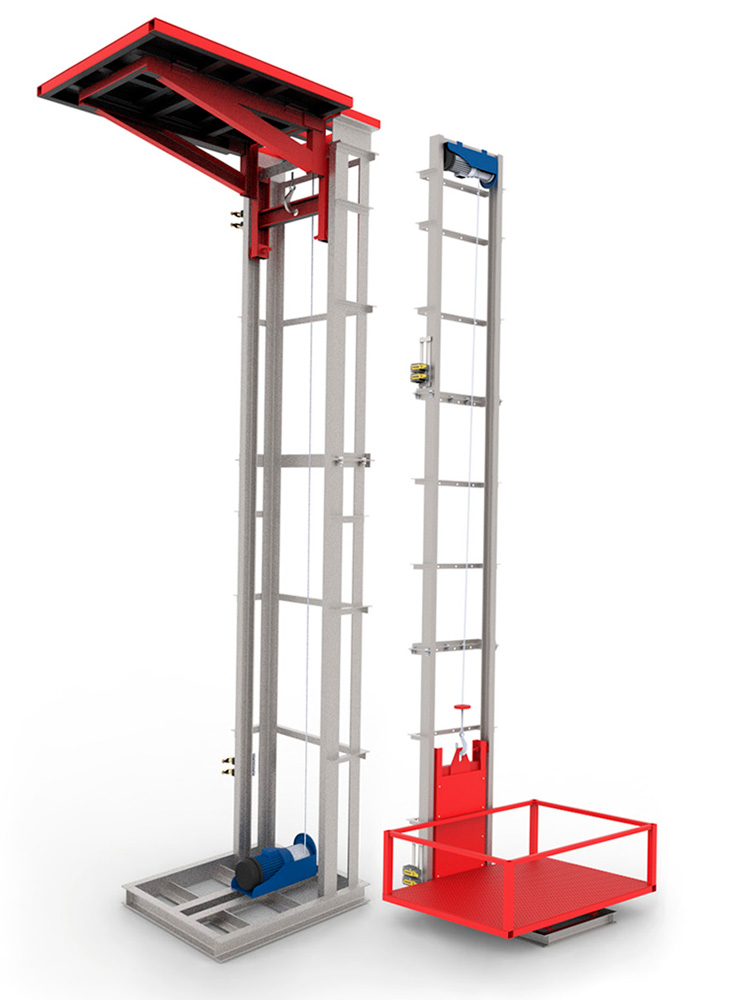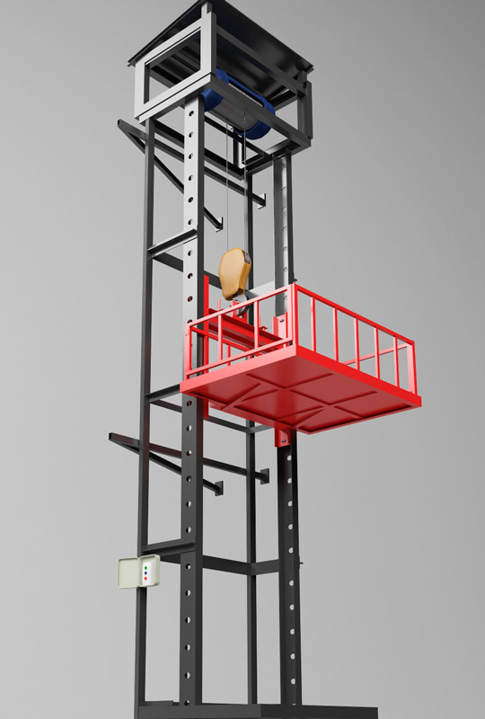 Мачтовый (консольный) грузовой подъемник представляет собой самонесущую металлическую мачту, вверх по которой движется грузовая платформа. Если есть необходимость опустить конструкцию на определенную высоту, чтобы платформа останавливалась ровно на уровне пола, используют приямок. Саму платформу в движение приводит электро-тельфер, который устанавливается сверху.