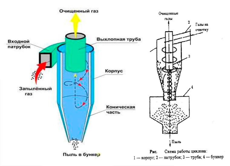 Принцип действия циклонов - инерционный, с использованием центробежной силы.