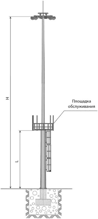 Прожекторная мачта освещения с молниеприемником используются в качестве наружного источника света, необходимого в темное время суток, а также для отвода грозовых молний.