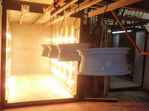 Первым этапом происходит зачищение, обезжирование и высушивание изделия. Далее на изделее наносится порошковая краска при помощи краскопульта. После этого, изделие помещают в специальную термокамеру. В этом помещении происходит этап закрепления и запекания покрытия под воздействием высоких температур. После этого полимерное покрытие еще плотнее соприкасается с изделием, становится прочным и долговечным.